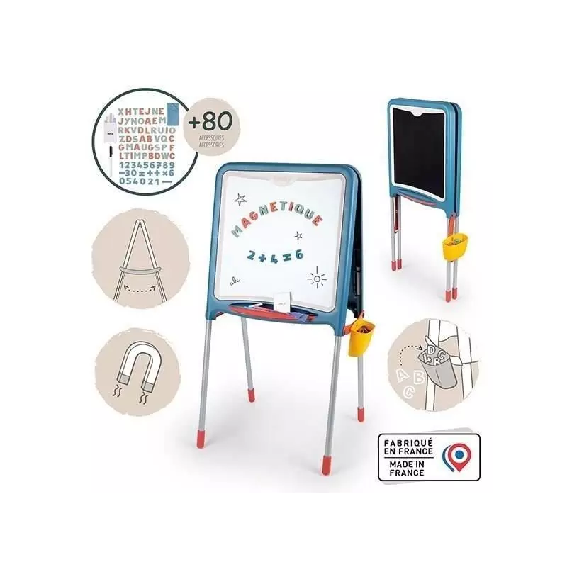 Le Smoby - Tableau Tubes est un indispensable pour les enfants à partir de 3 ans qui aiment dessiner et s'amuser. Ce tableau double face offre une surface magnétique d'un côté et une ardoise de l'autre, permettant aux petits artistes en herbe d'exprimer leur créativité de différentes manières.