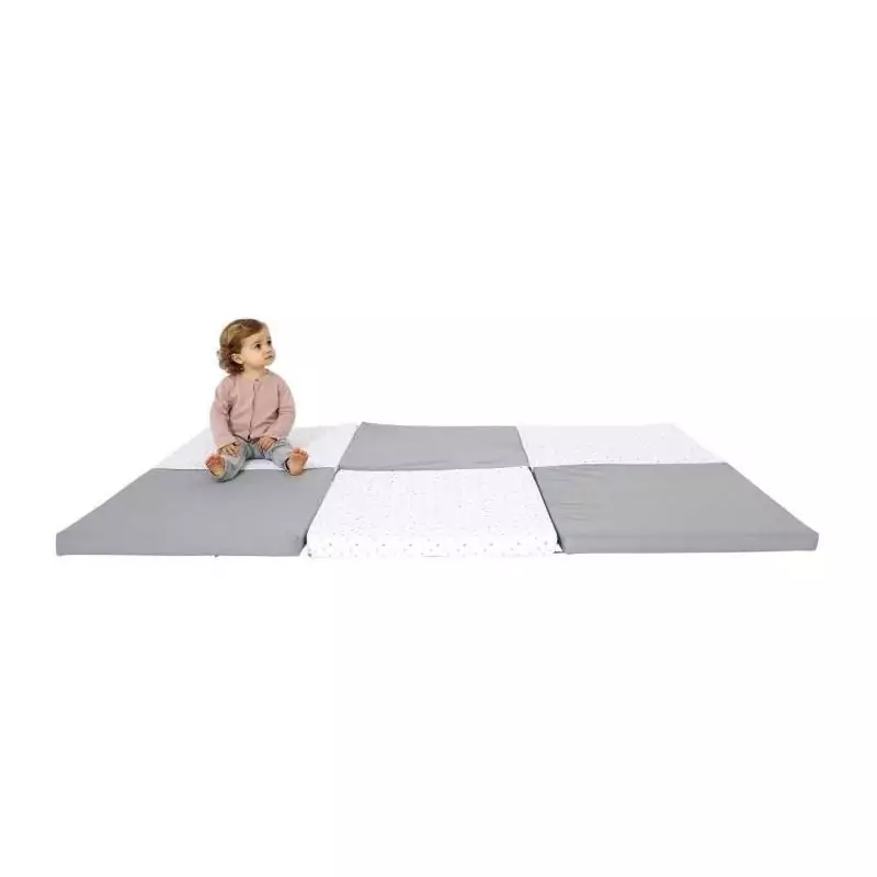 Avec sa taille XL, ce tapis offre une grande surface de jeu où bébé pourra s'épanouir en toute sécurité. Les étoiles grises imprimées sur le tapis ajoutent une touche de fantaisie et d'émerveillement à l'heure du jeu. Grâce à son design évolutif 5-en-1, ce tapis accompagnera la croissance de votre enfant et s'adaptera à ses besoins en fonction de son âge et de ses capacités.