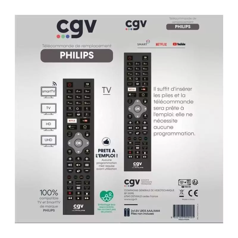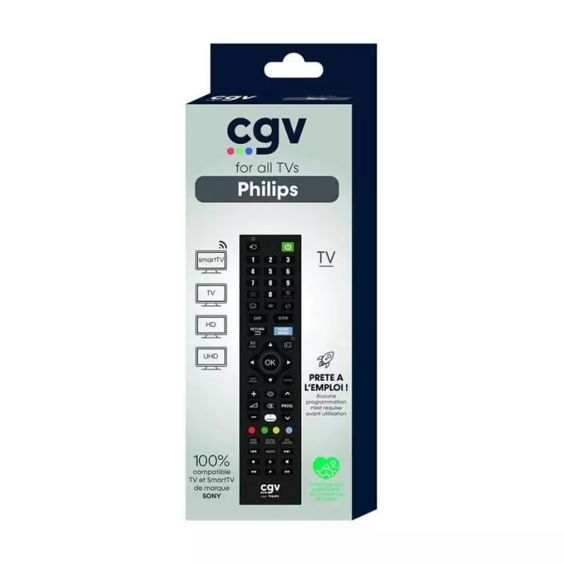 Télécommande de remplacement - CGV - FIDELIO Philips - Pour téléviseurs Philips - Sans programmation - Prete a l'emploi