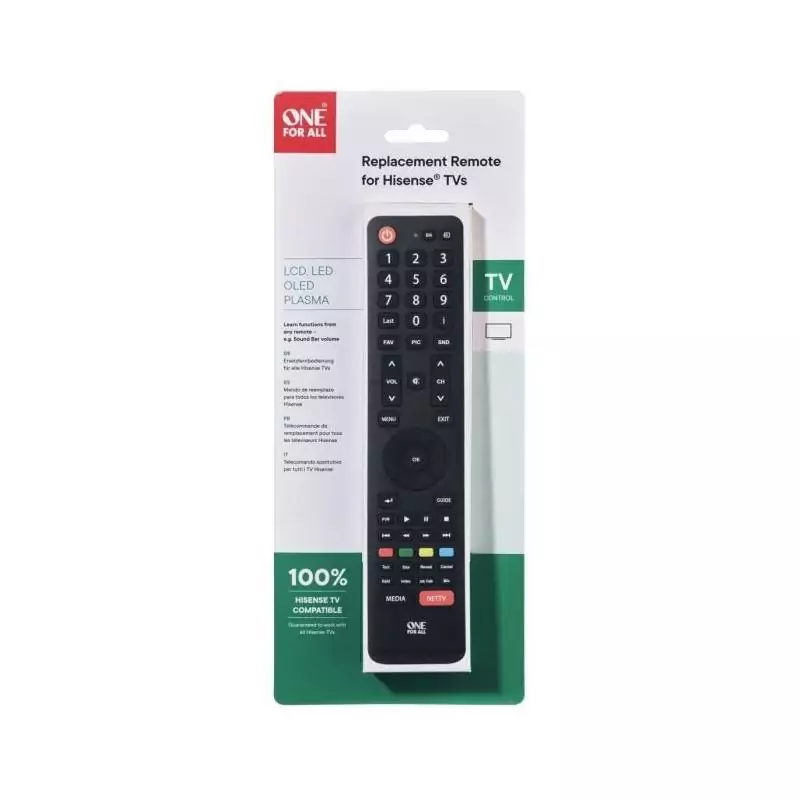 Télécommande Universelle - ONE FOR ALL - URC1916 - Compatible avec TV Hisense - Design Élégant - Noir