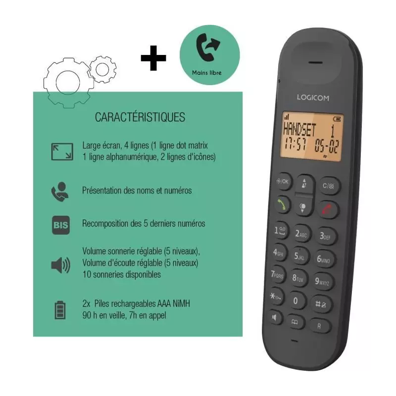 Ne manquez plus aucun appel important grâce au Téléphone fixe sans fil LOGICOM DECT ILOA 150 SOLO. Restez joignable à tout moment et communiquez en toute simplicité avec vos proches et collègues. Optez pour la qualité et la praticité avec ce téléphone fixe sans fil haut de gamme.