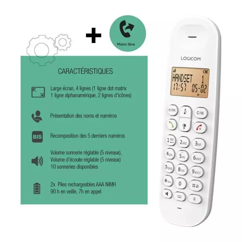 Téléphone fixe sans fil - LOGICOM - DECT ILOA 150 SOLO - Blanc - Sans répondeur