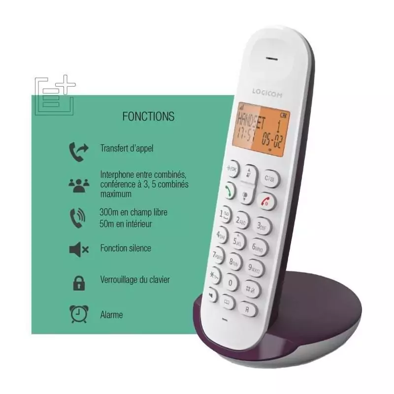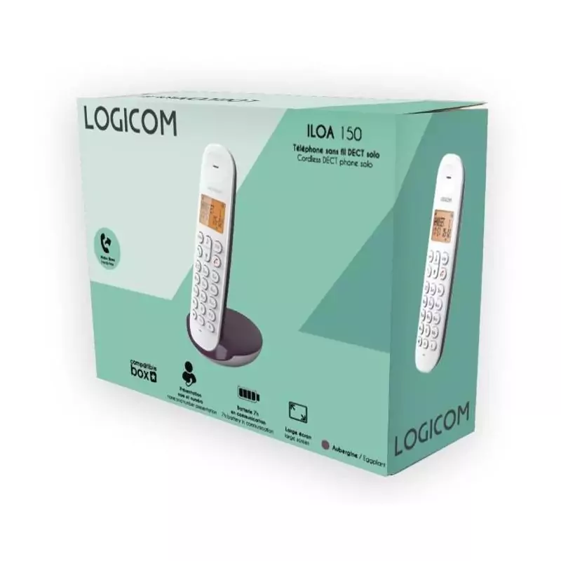 Téléphone fixe sans fil - LOGICOM - DECT ILOA 150 SOLO - Aubergine - Sans répondeur