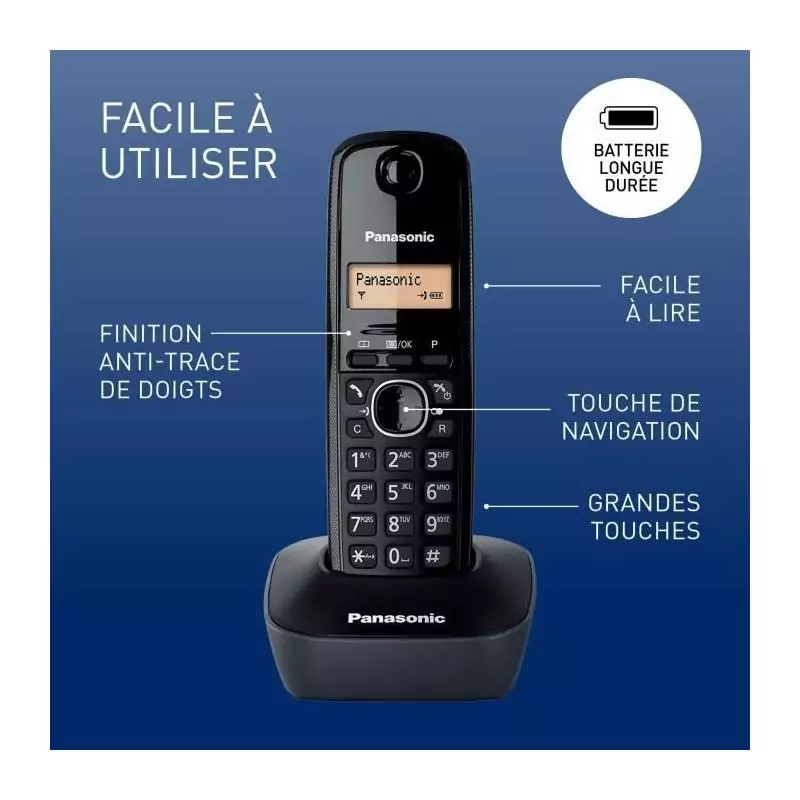 Téléphone Sans Fil Panasonic KX-TG1611FRH – DECT avec Répondeur et Écran LCD