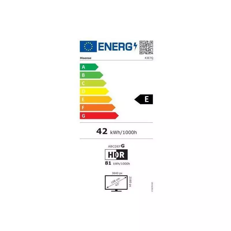 Hisense 43E7Q - TV QLED 43 (108 cm) - 4K UHD 3840x2160 - TV connecté - 3xHDMI 2.1 - WiFi