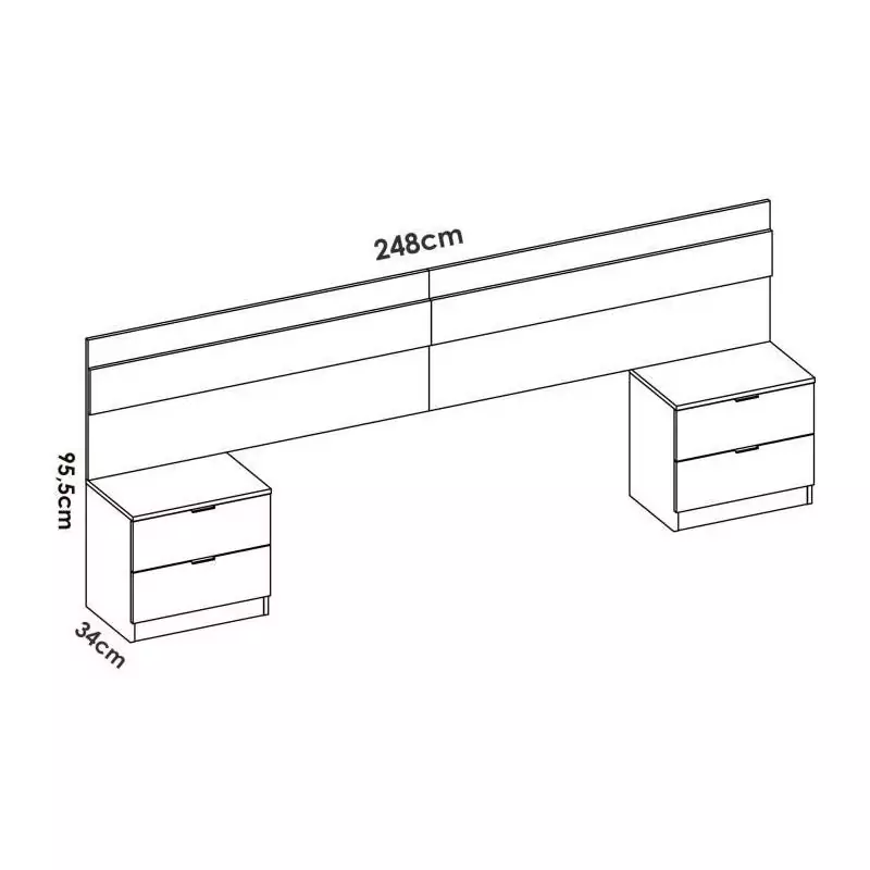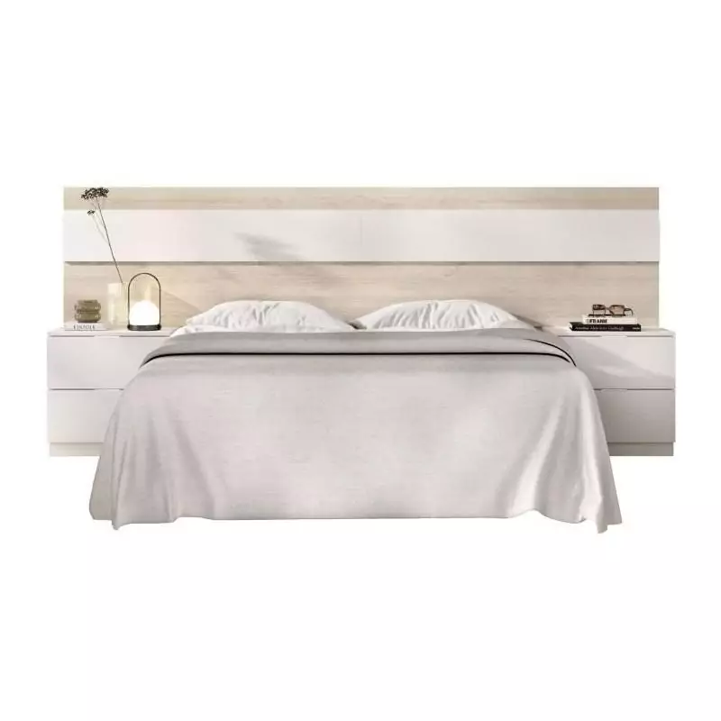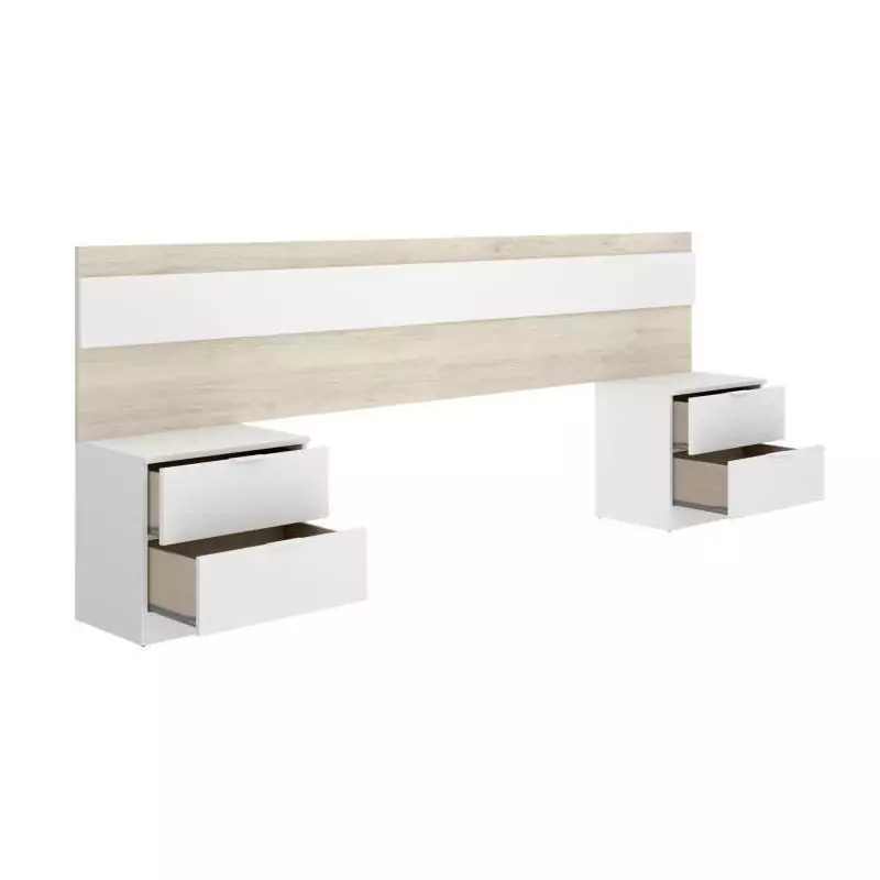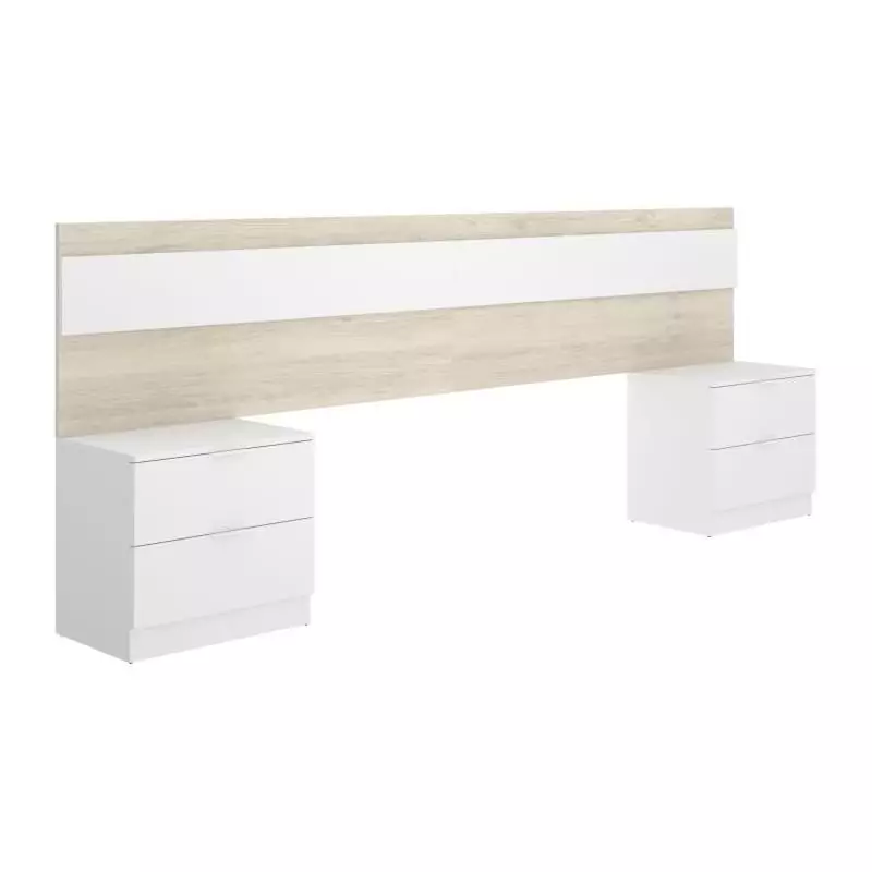 Tete de lit avec 2 tables de chevet a 2 tiroirs - Chene / Blanc - 248 x 34,2 x 96 cm