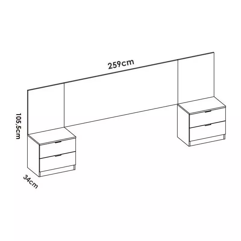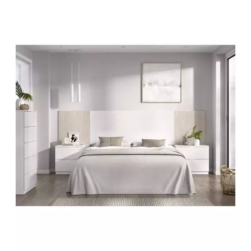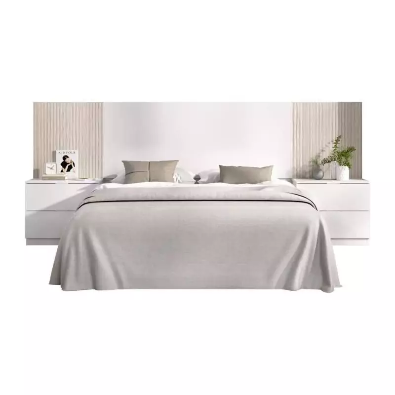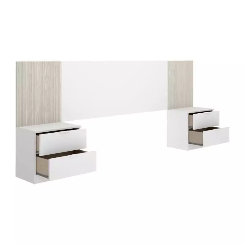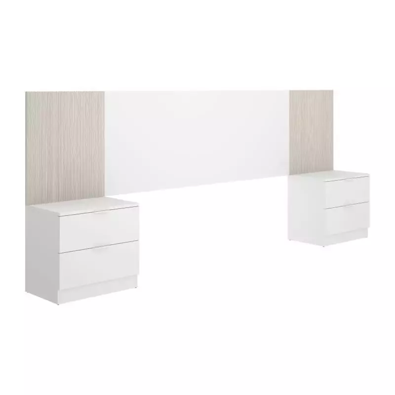Tete de lit avec chevets intégrés - LOMA - Blanc / Bois - 258,6 x 34,2 x 106 cm