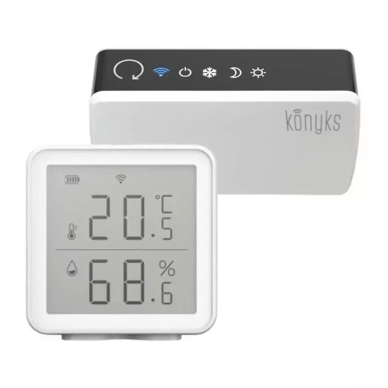 Le Konyks eCosy + Termo est un thermostat d'ambiance intelligent qui vous permet de contrôler la température de votre maison à distance. Grâce à sa connectivité Wi-Fi, vous pouvez régler la température de n'importe où via votre smartphone ou votre tablette.