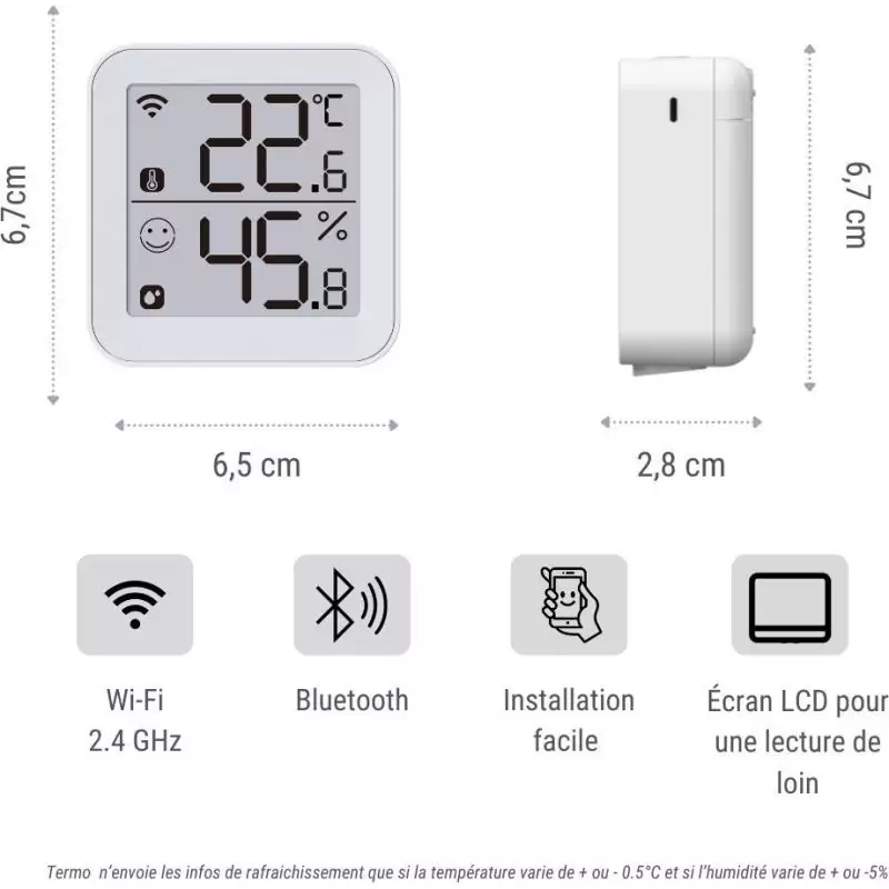 Thermometre et Hygrometre - KONYKS - Termo 2 - Intérieur - Détecteur de température + humidité - Wifi - Grand écran - Blanc