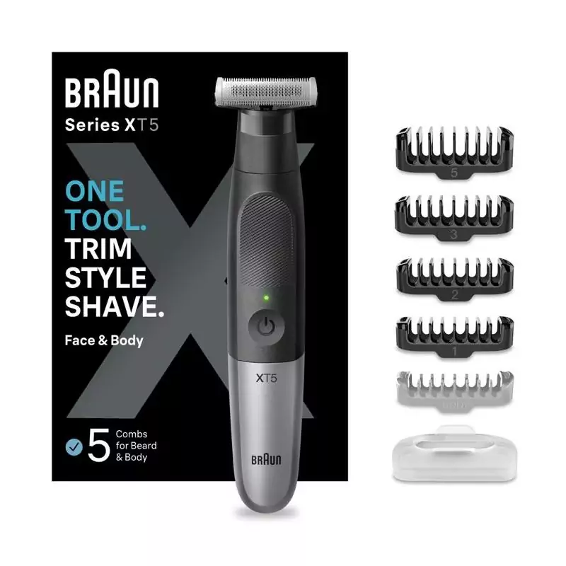 Polyvalente, la Braun Series X XT5100 est équipée d'un rasoir pour le corps et le visage, offrant ainsi une solution complète pour votre routine de soins masculins. Que vous souhaitiez tailler votre barbe, sculpter votre moustache ou raser votre corps, cette tondeuse polyvalente répondra à tous vos besoins.