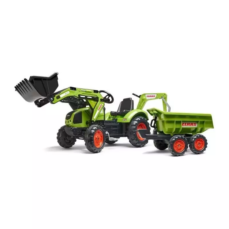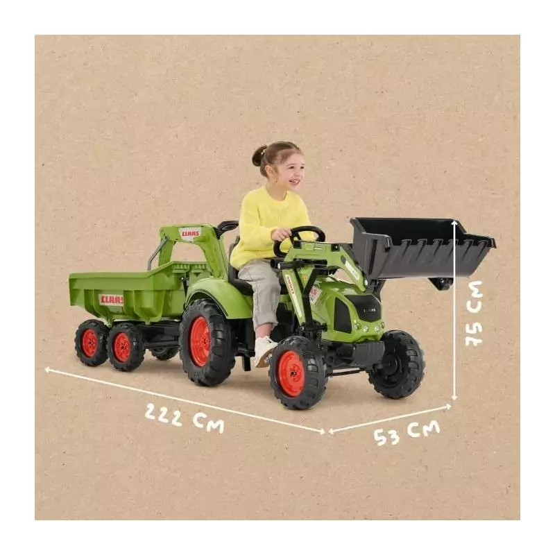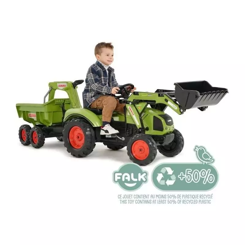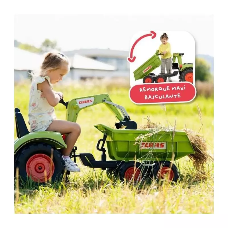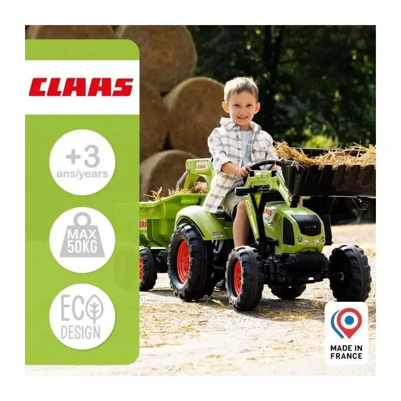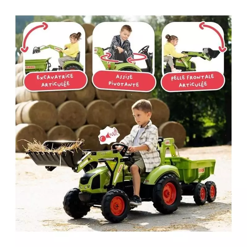 Tractopelle a pédales Claas - FALK - Volant directionnel, Selle pivotante & Excavatrice remorque - Fabriqué en France - Des 3