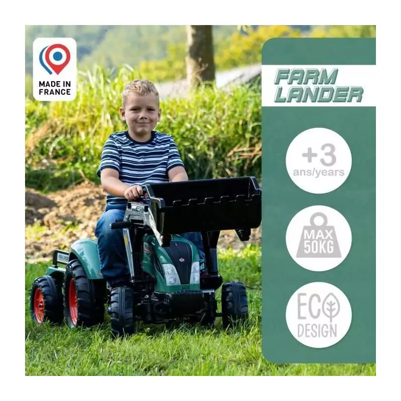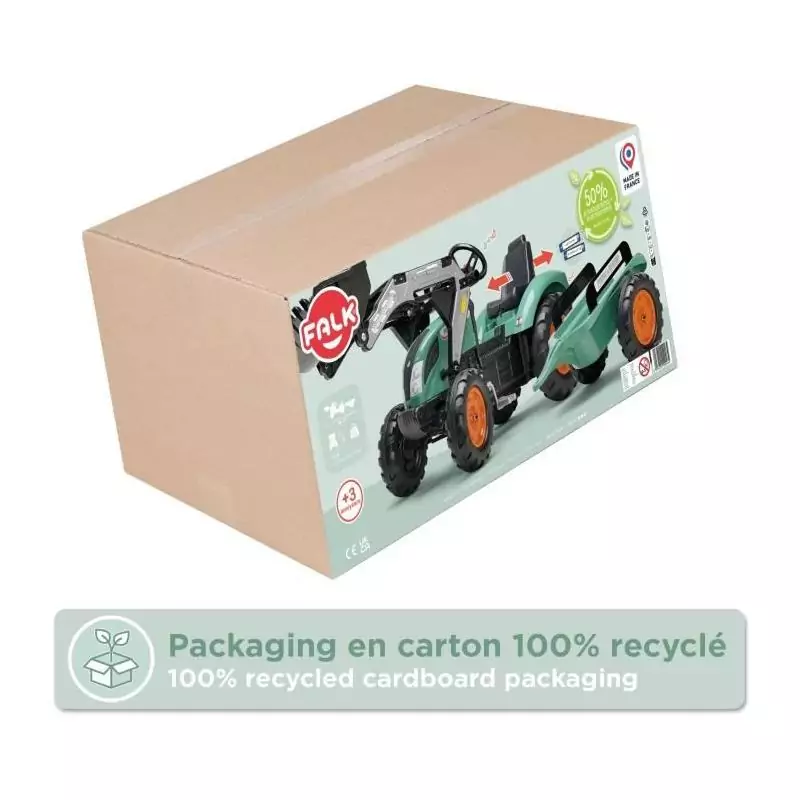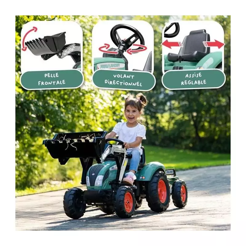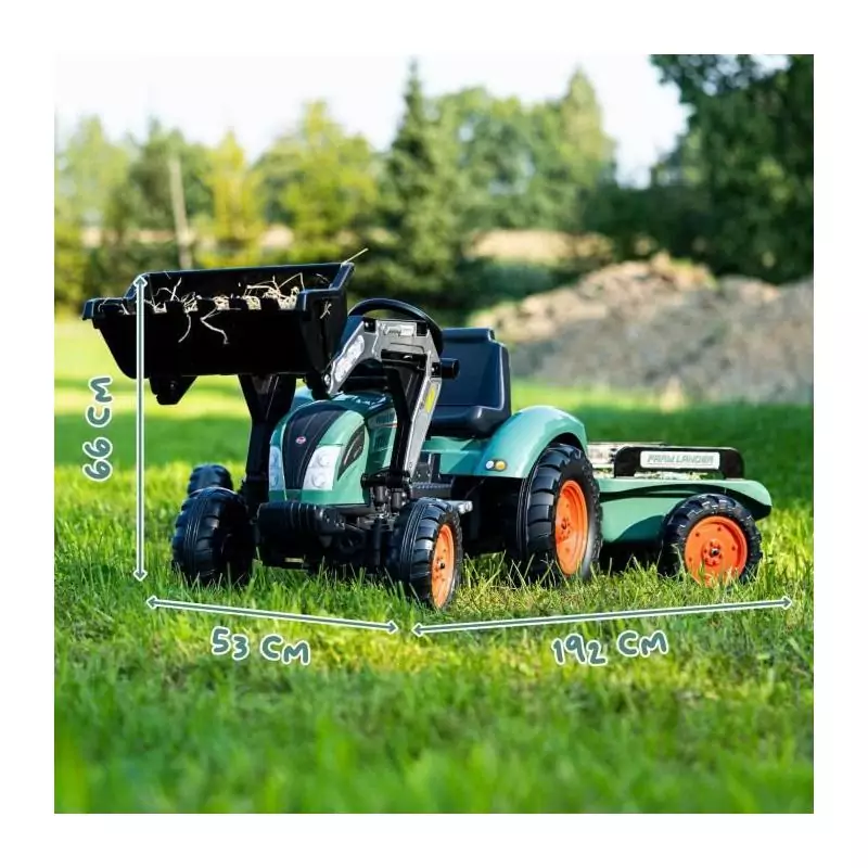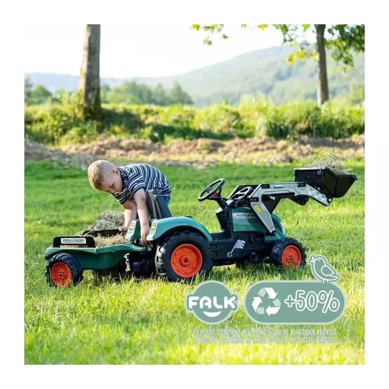 Tractopelle a pédales Farm Lander - FALK - Volant directionnel, Remorque - Fabriqué en France - 50% de plastique recyclé - De