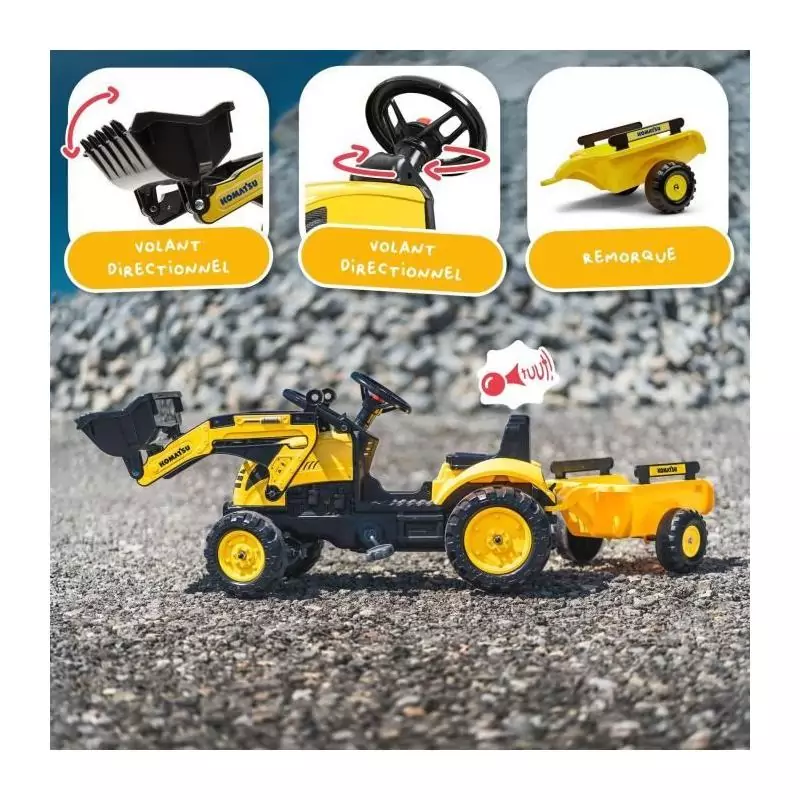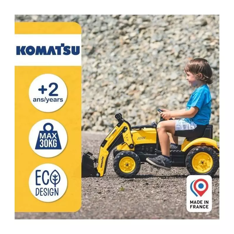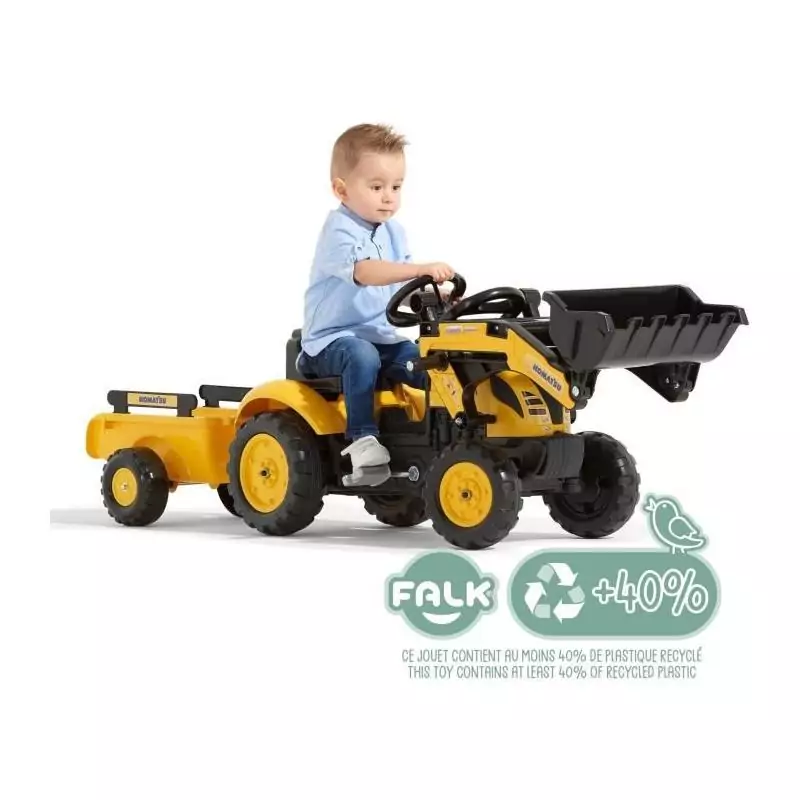 Tractopelle a pédales Komatsu - FALK - Pelle frontale et Remorque - 100% Fabriqué en France - 40% de plastique recyclé - Des