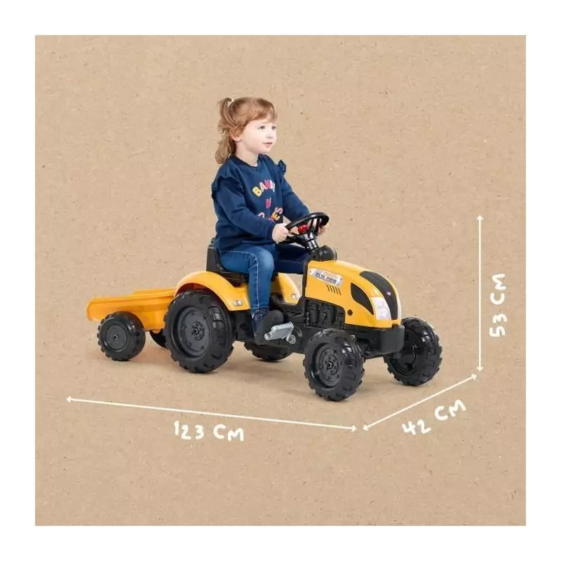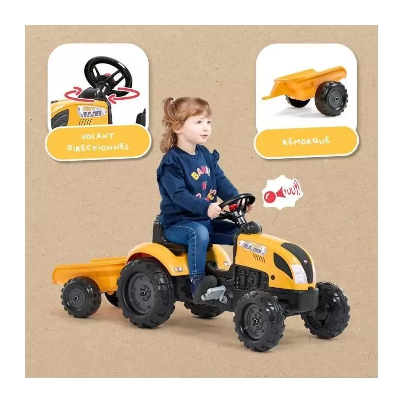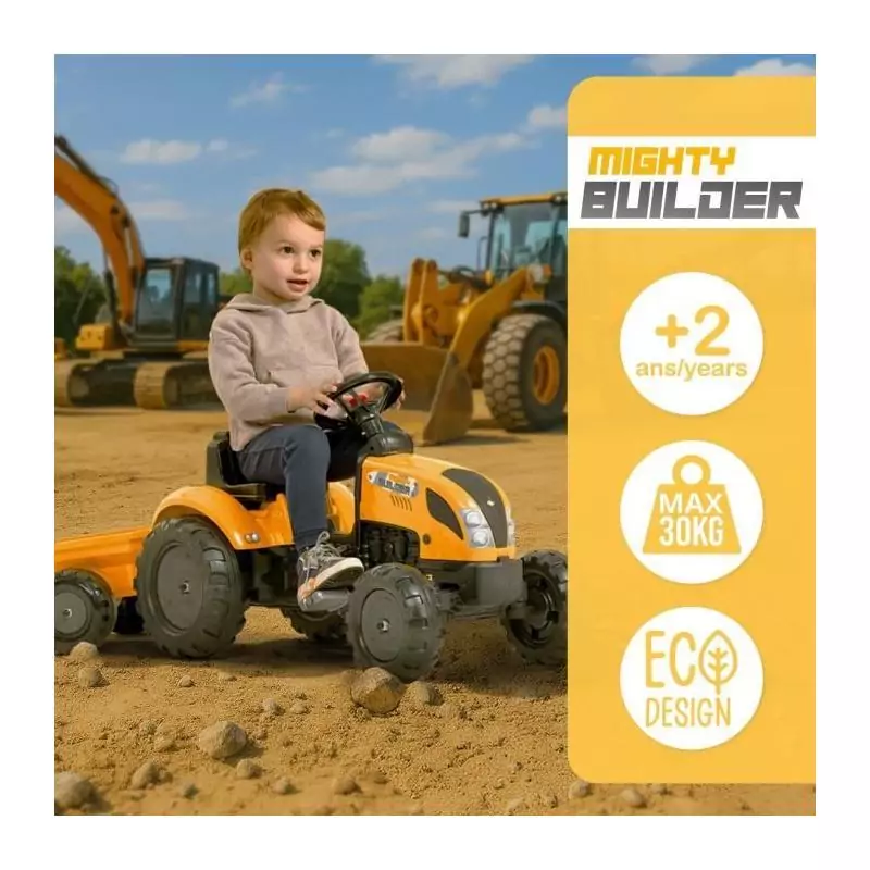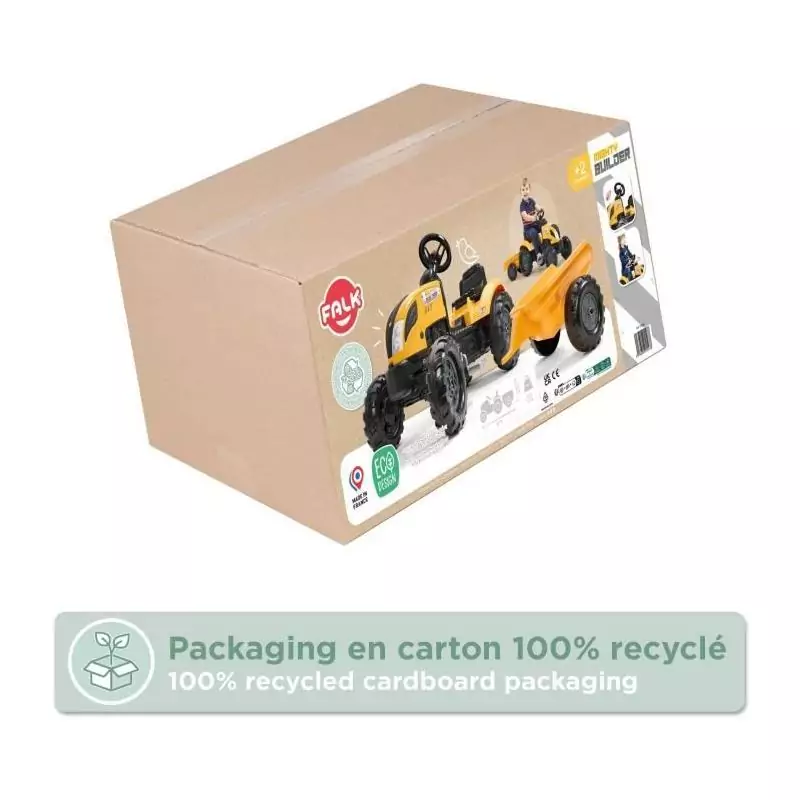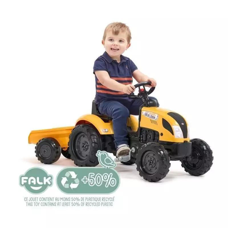 Tracteur a pédales Mighty Builder - FALK - Avec remorque - 100% Fabriqué en France - Au moins 50% de plastique recyclé - Des