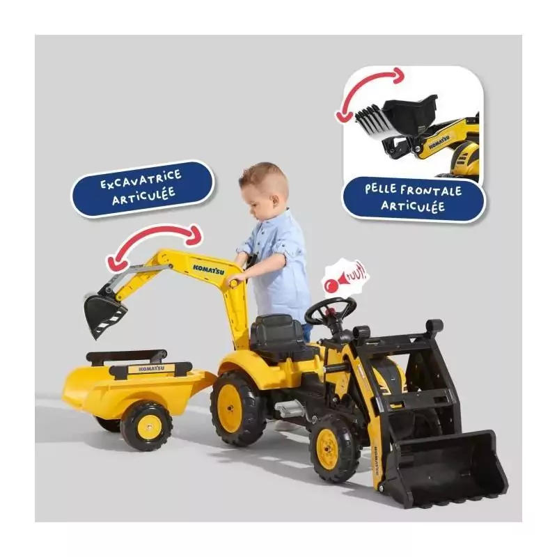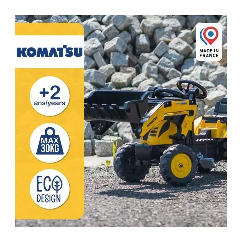 Tractopelle a pédales Komatsu - FALK - Pelle frontale & Excavatrice - 100% Fabriqué en France - 30% de plastique recyclé - De