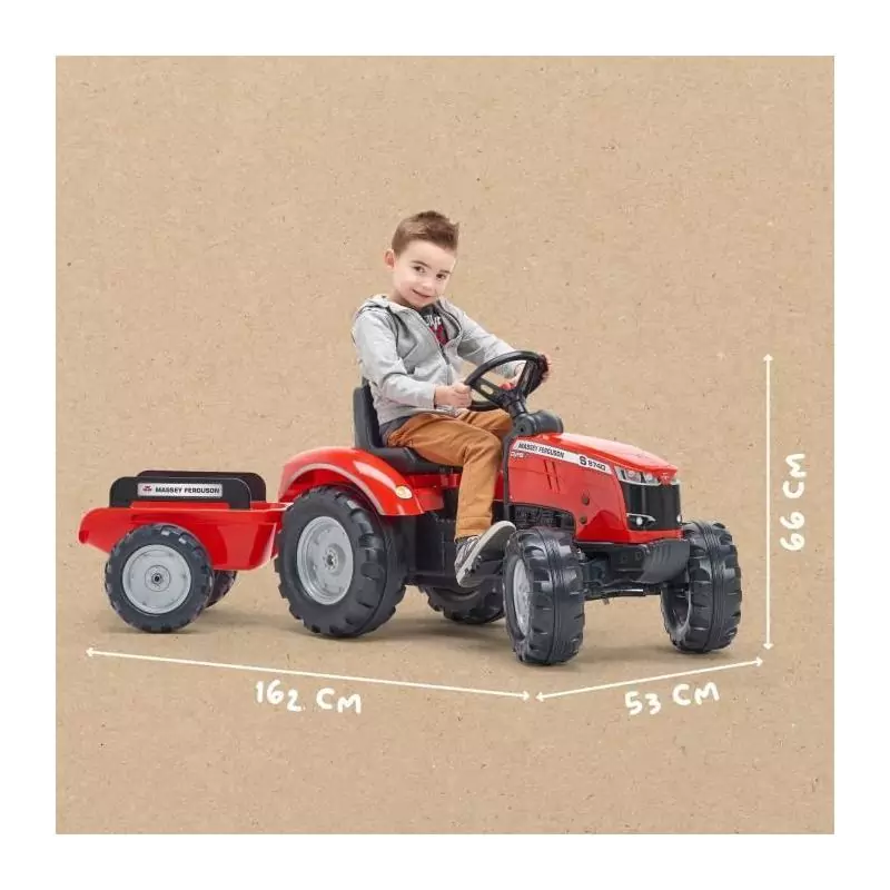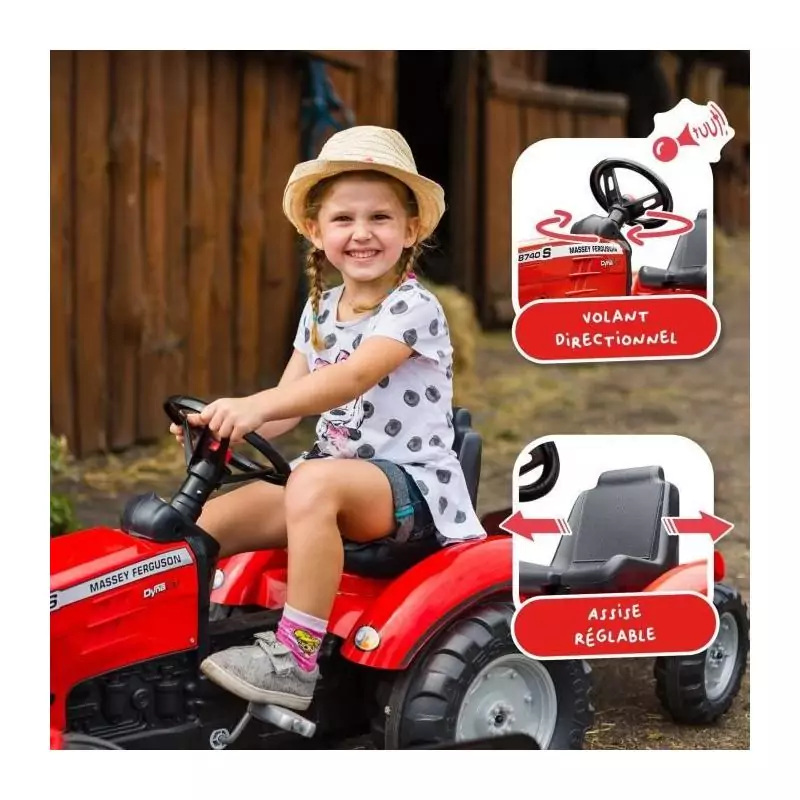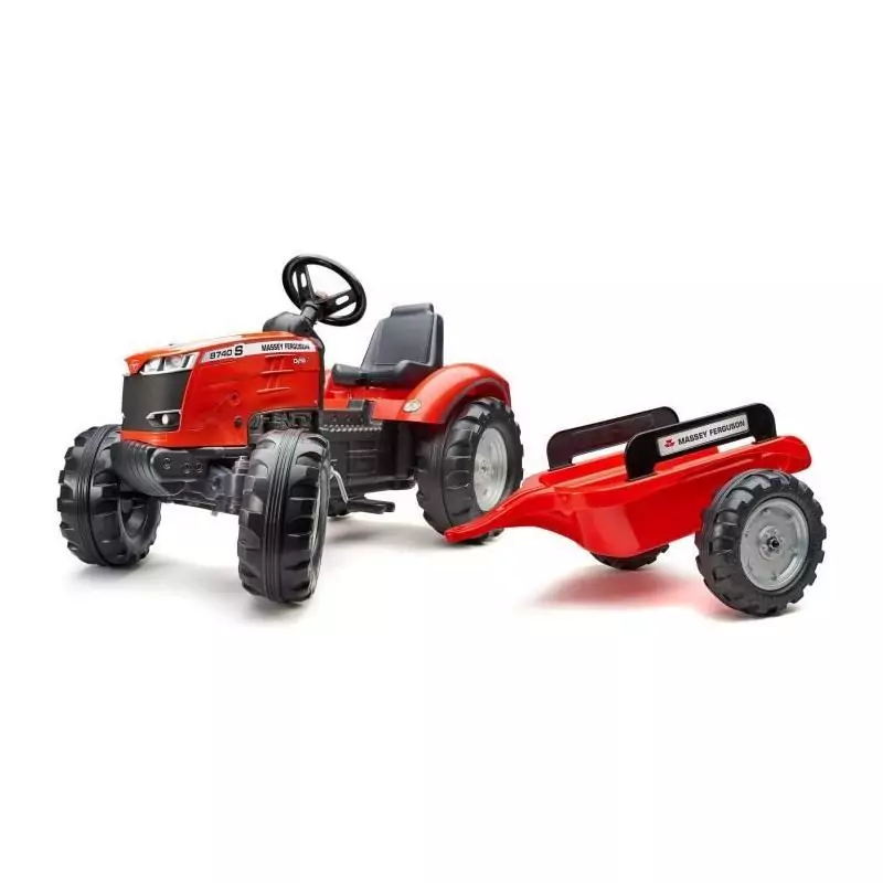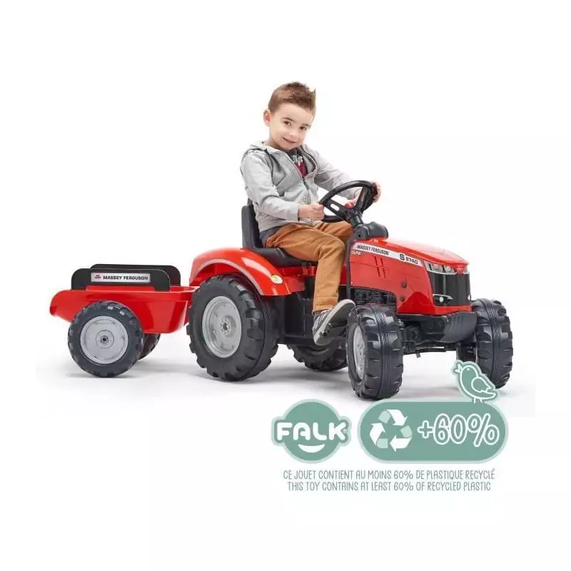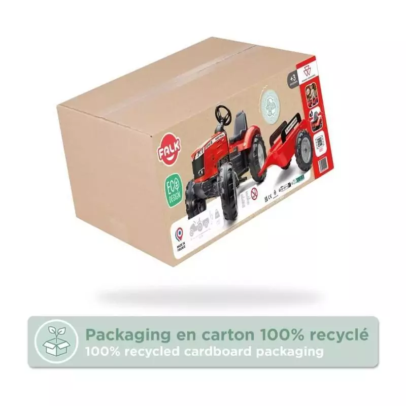 Tracteur a pédales Massey Ferguson - FALK - Volant directionnel, Remorque - Fabriqué en France - 60% de plastique recyclé, De