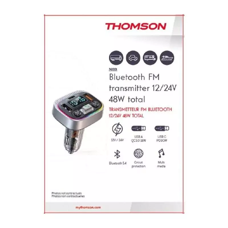 Transmetteur FM Bluetooth Version 5.4 - THOMSON - 12/24V - 48 W -QC 3.0 & PD 30W pour une charge rapide et efficace de vos appar