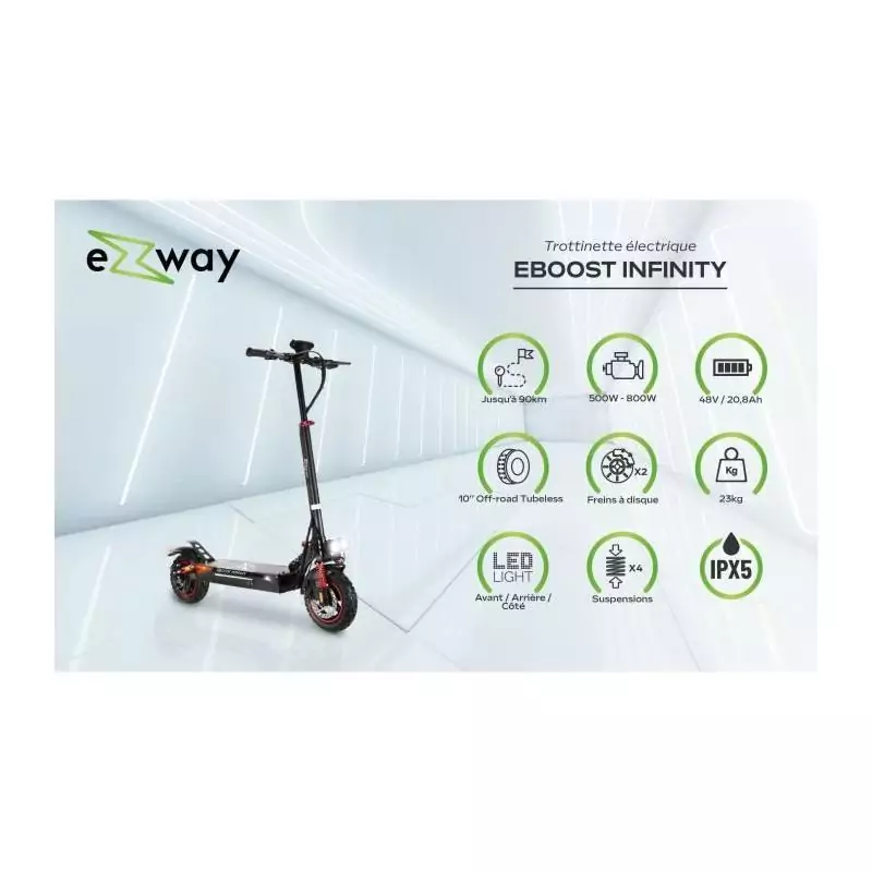 Que vous soyez un amateur de sensations fortes ou simplement à la recherche d'un moyen de transport pratique et écologique, la Trottinette électrique Eboost Infinity est faite pour vous. Ne passez pas à côté de cette opportunité de vous déplacer en toute liberté et confort. Commandez la vôtre dès maintenant et laissez-vous séduire par ses performances exceptionnelles.