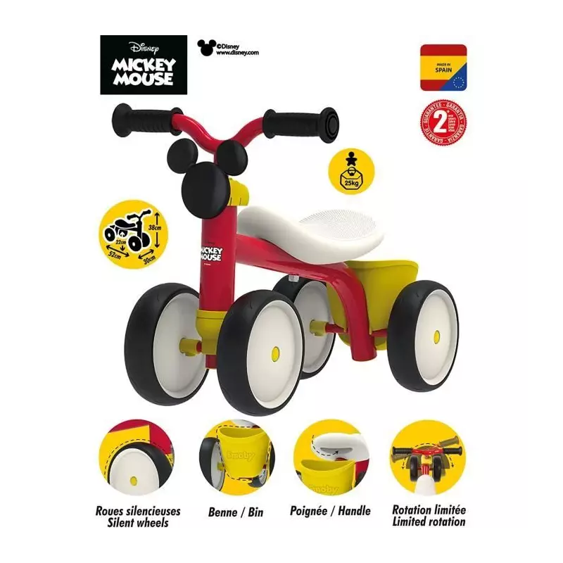 Ce porteur mixte est le cadeau parfait pour un anniversaire ou toute autre occasion spéciale. Offrez à votre enfant des heures de jeu et d'amusement avec le porteur Smoby Mickey en métal Rookie.