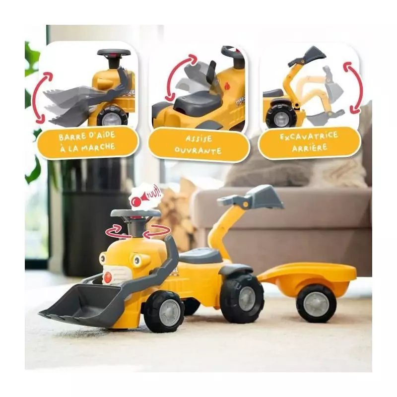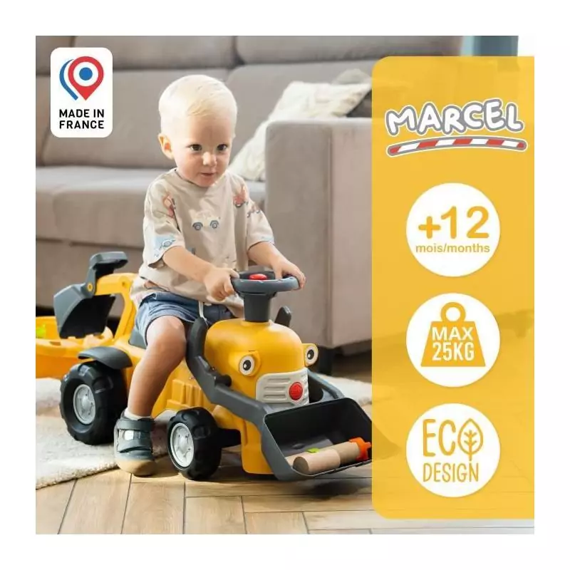 Porteur Chantier Marcel - FALK - Pelle frontale, excavatrice - Jaune - Fabriqué en France - 90% de plastique recyclé - Des 12