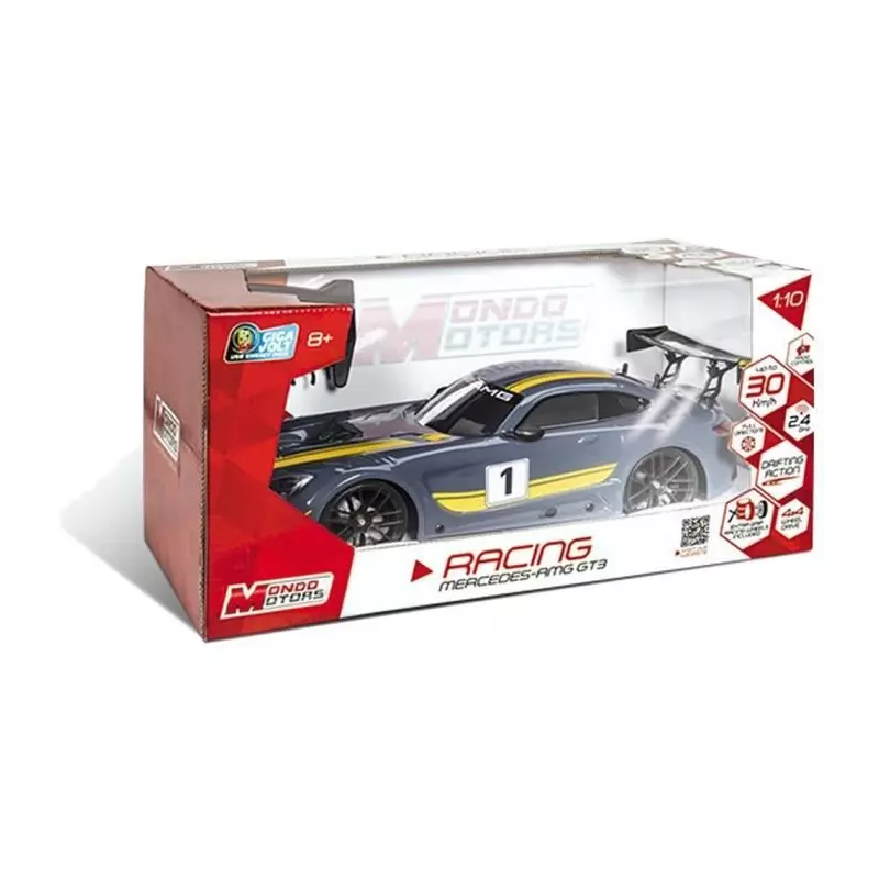 La voiture radiocommandée MONDO Mercedes AMG GT3 est un modèle réduit exceptionnel qui ravira les passionnés de voitures de course. Avec une échelle réaliste de 1:10, cette réplique fidèle de la célèbre Mercedes AMG GT3 offre des performances de pointe pour des courses endiablées.