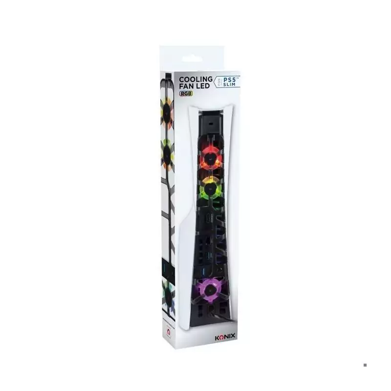 Ventilateur de refroidissement - KONIX - PS5 Slim - 21 x 68 x 40 cm - 3 vitesses - Éclairage LED RVB - Port USB 3.0 - Noir