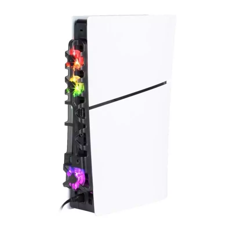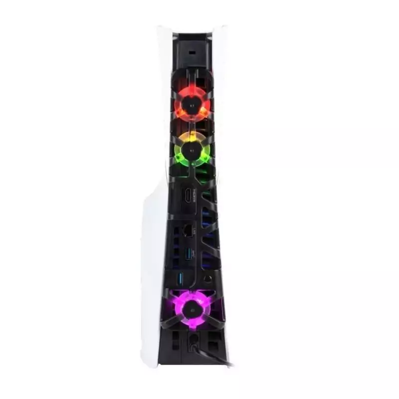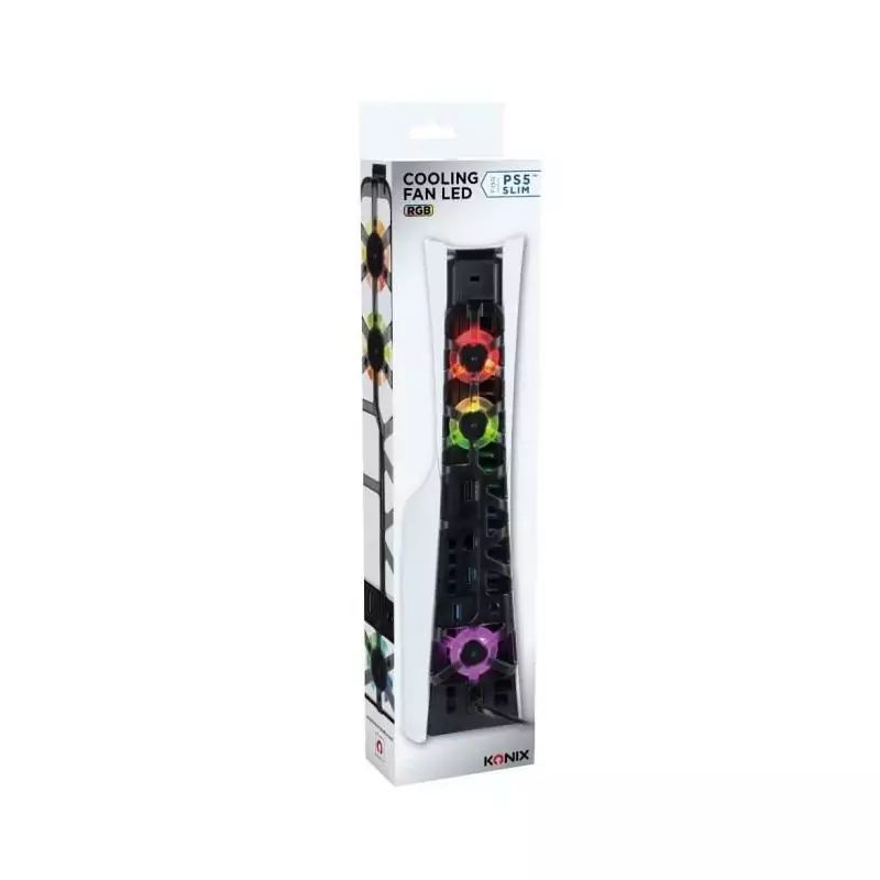 Ventilateur de refroidissement - KONIX - PS5 Slim - 21 x 68 x 40 cm - 3 vitesses - Éclairage LED RVB - Port USB 3.0 - Noir