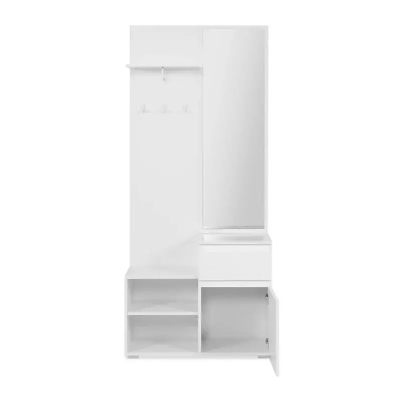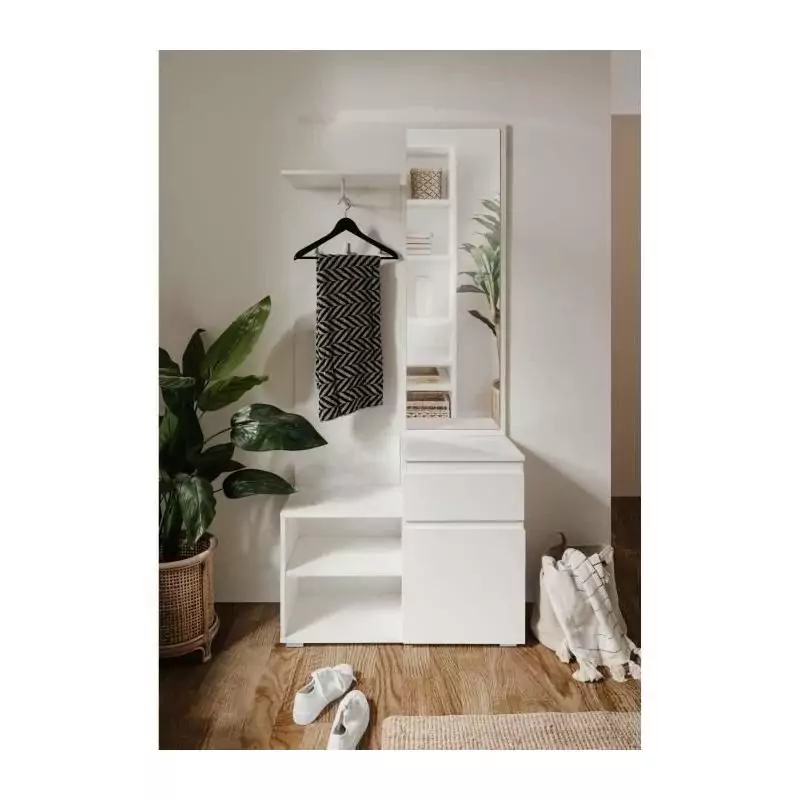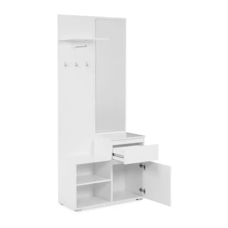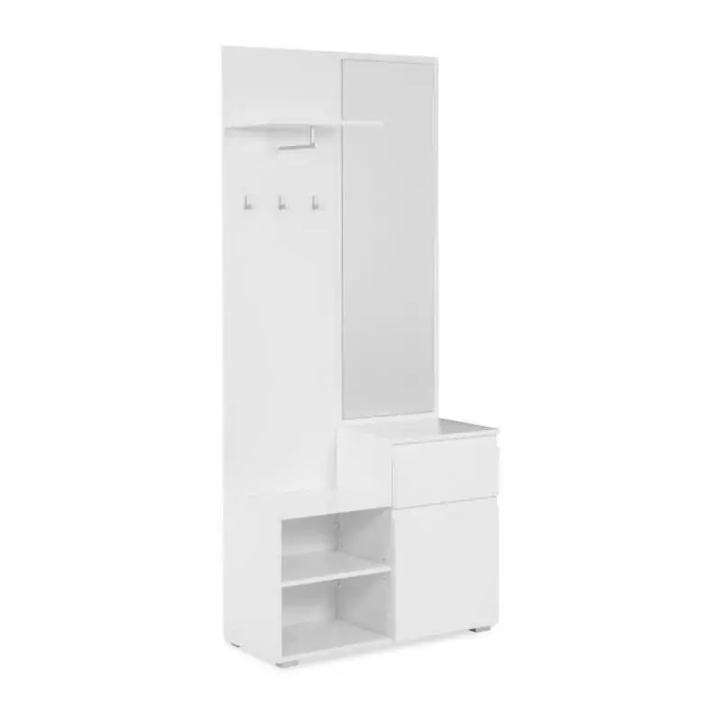 Meuble d'entrée de rangement avec penderie IMAGE - Décor blanc - 1 porte + 1 tiroir - L85 x H195 x P37 cm