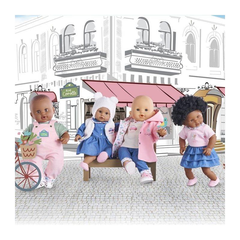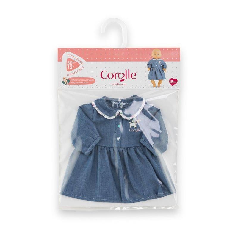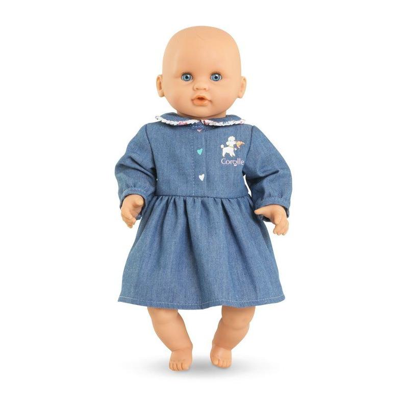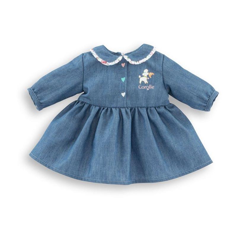 Robe Week-end a Paris - Corolle - 30 cm - Imitation denim - Col claudine - Broderies coeurs