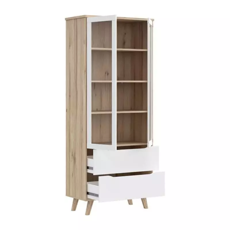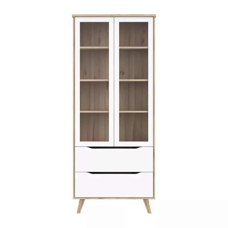 Les portes vitrées offrent une visibilité totale sur le contenu de la vitrine, mettant en valeur vos plus beaux objets et collections. L'intérieur est équipé d'étagères robustes pour un rangement optimal et organisé. Grâce à sa construction solide, la vitrine VANKKA vous garantit une durabilité à toute épreuve.