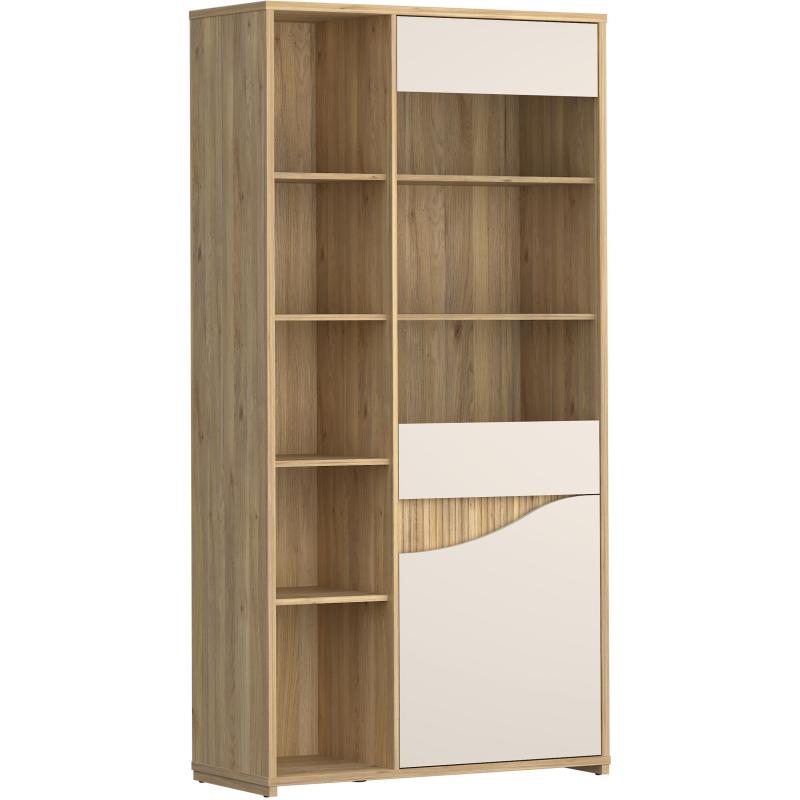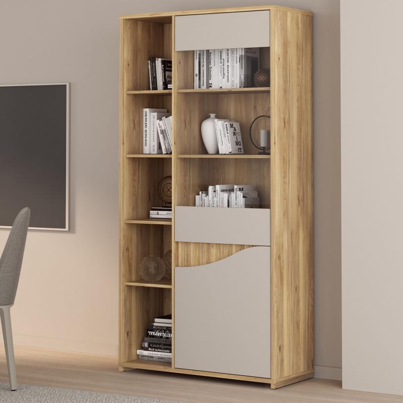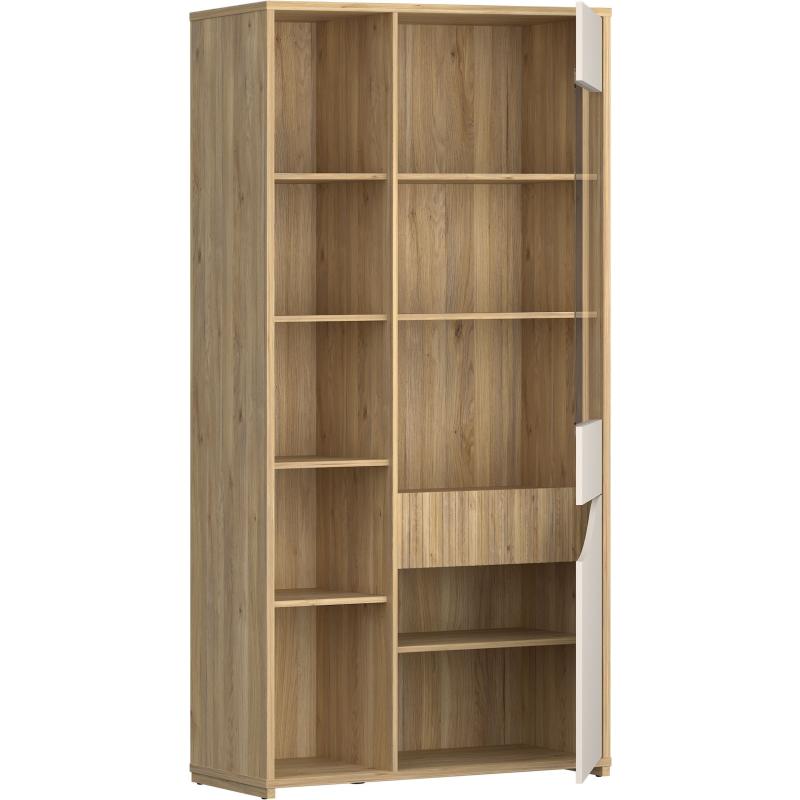 Vitrine - PoeM - 2 portes dont 1 vitrée - Sable / Chene - 99,5 x 42, 196,6 cm