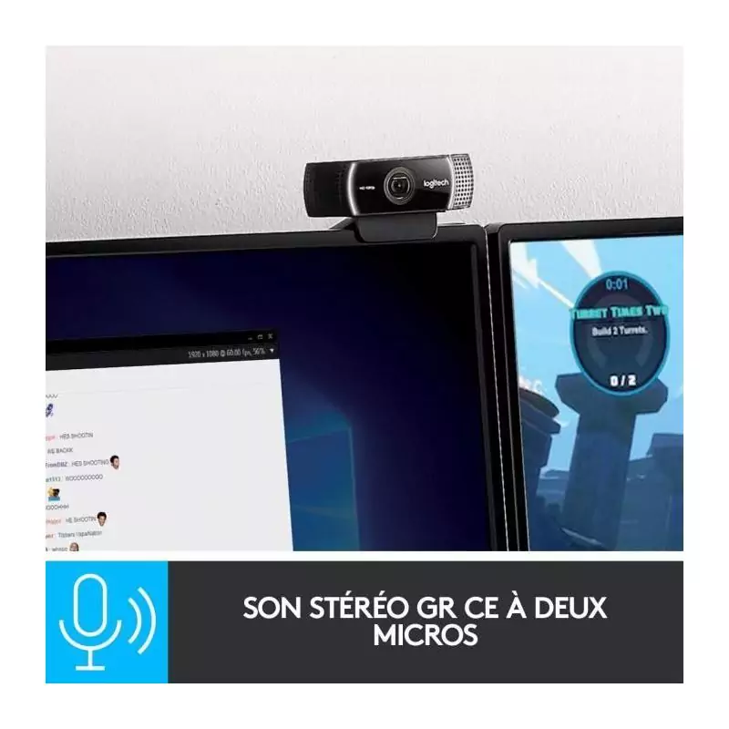 Webcam - Full HD 1080p - Logitech G - C922 Pro - Microphone intégré - Stream