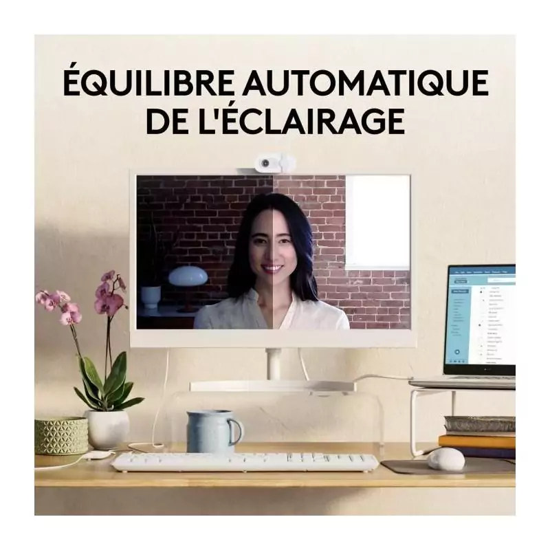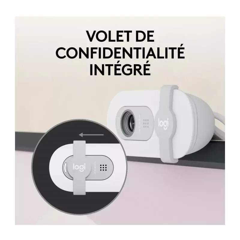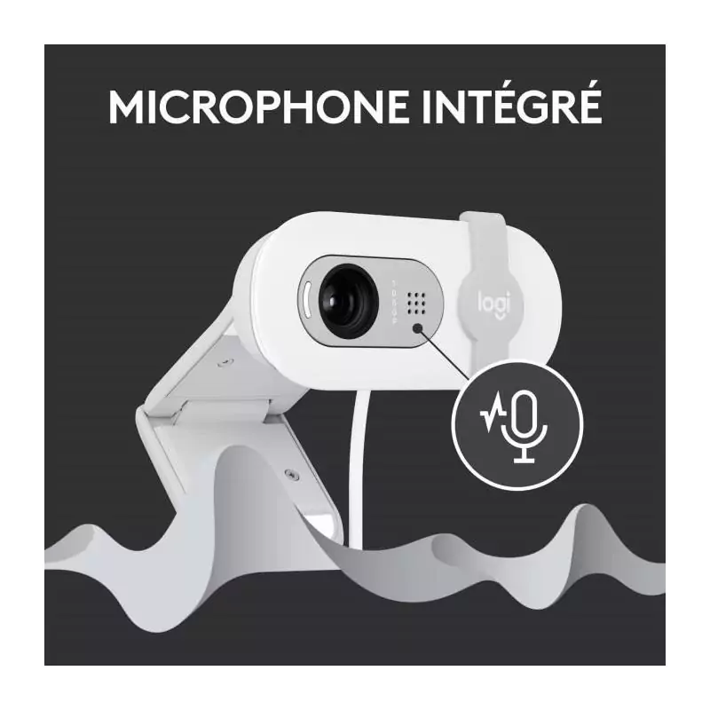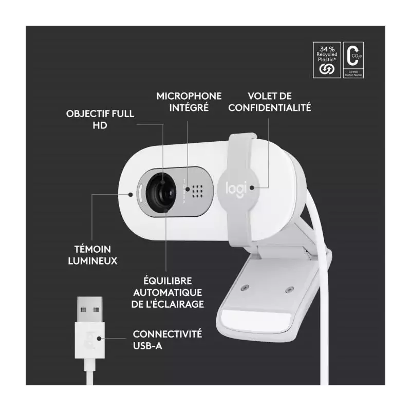 Webcam - Full HD 1080p - Logitech - Brio 100 - Microphone intégré - Blanc