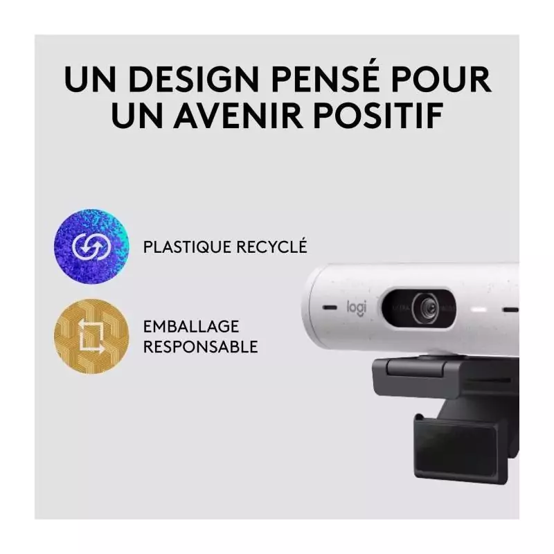 Webcam - Full HD 1080p - Logitech - Brio 500 - Microphone intégré - Blanc