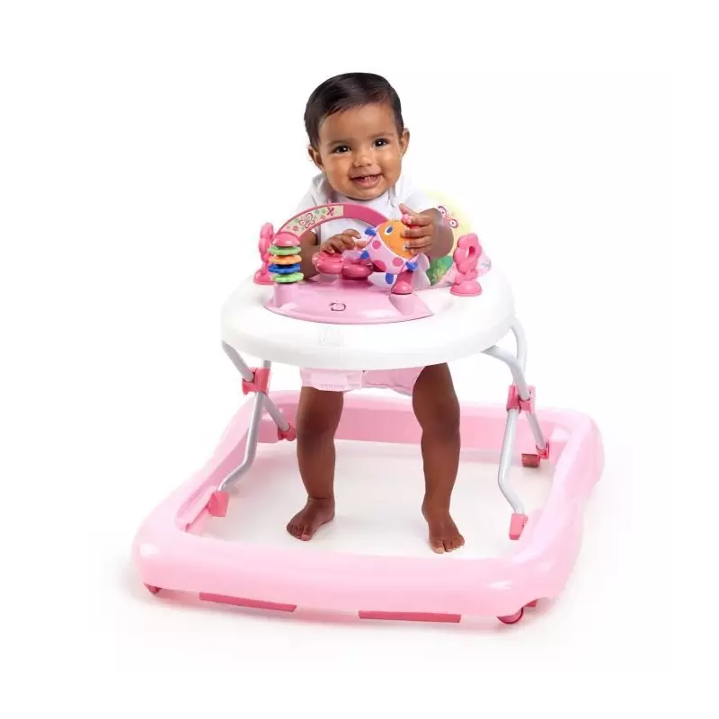 Le Trotteur bébé fille évolutif et pliable 2-en-1 de BRIGHT STARTS est le compagnon idéal pour accompagner votre petite princesse dans ses premiers pas. Avec son design rose jardin et ses caractéristiques innovantes, ce trotteur offre confort, sécurité et amusement.