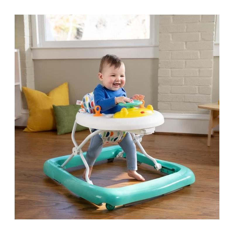 BRIGHT STARTS Trotteur bébé évolutif et pliable 2-en-1 - Lumieres et Sons - Jouet d'éveil amovible, Musique, Hauteur Réglab